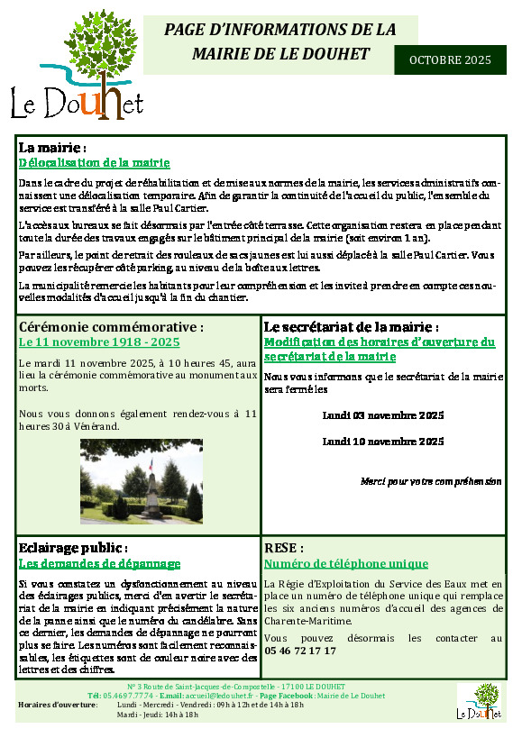 Nous vous informons que les cimetières communaux ont fait l’objet d’une opération d’engazonnement dans le cadre de l’entretien et de l’amélioration du cadre paysager. Nous vous demandons d’être prudent sur l’utilisation des produits utilisés afin de ne pas détériorer l’engazonnement.