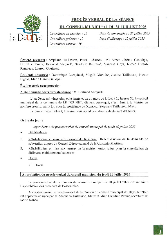 Procès-verbal du conseil municipal du 31 juillet 2025